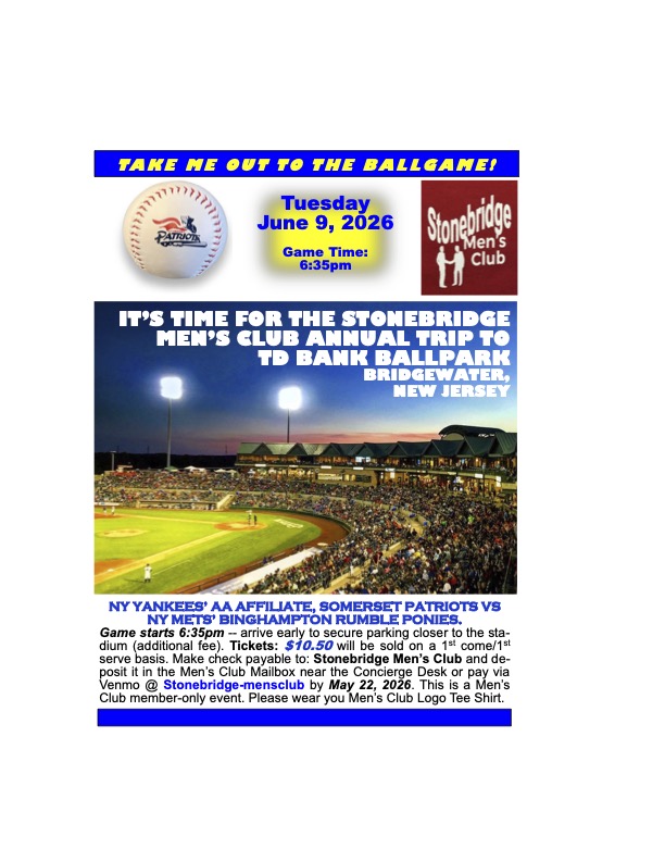 Clubhouse BallroomEnjoy breakfast and long-time outstanding Yankee presented by auther Paul Semendinger. Please pay $15 by April 17.